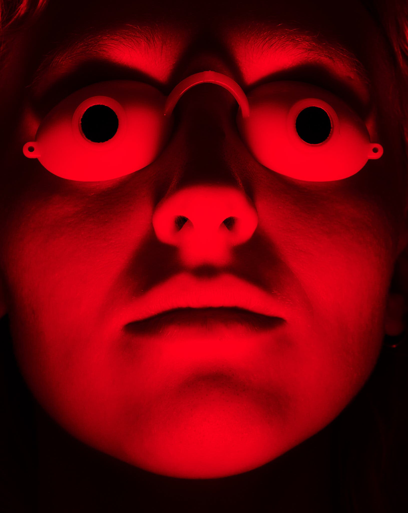 The walls were drenched in deep red light — like something straight out of a horror movie.